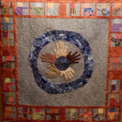 If I may say so, I think her entry has a primitive, raw reality, like the speech of a child, an unrehearsed cry from the heart, like a prayer spoken in the darkness when one is afraid and no one else is around, pleading for a miracle. And thus, as I see it, her quilt emerges from the traditional territory of the heart while also speaking on behalf of the global community. The “artist statement,” which accompanied her quilt, speaks for itself: